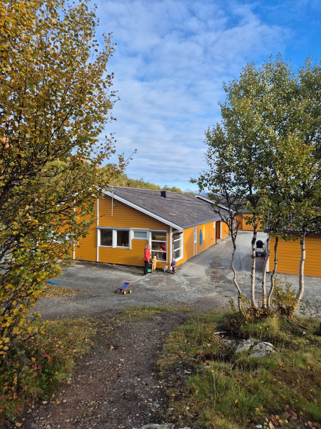 Vi ligger mellom skattøra og varden borettslag, og har gangavstand til skogen, fotballbane, Skattøravannet/Rundvannet og flere ulike lekeplasser. Vi har to avdelinger med barn i alder 0-3 år og to avdelinger med barn i alder 3-6 år. Vi har et stort, kupert uteområde med akebakke, masse trær å klatre i, lyng til å plukke blåbær av og lete etter insekter i, og en stor flott grillhytte. Vi har egen kokk 3 dager i uken. Kom gjerne innom oss på besøk for å se hvordan vi har det.
