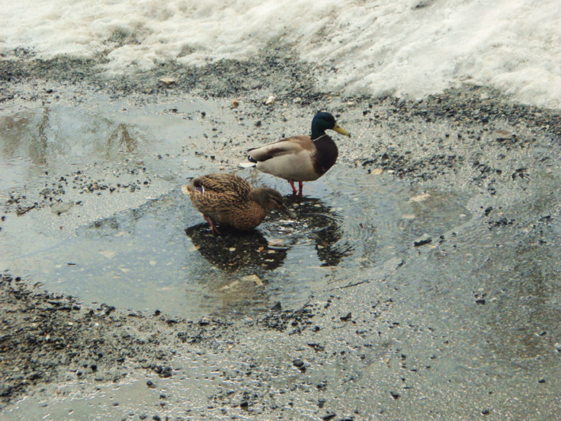 Hver vår får vi hyggelig besøk i barnehagen. Et stokkandpar kommer til oss, mens de venter på at isen skal gå av Skattøravannet. De har vært hos oss i flere uker. Vi syns det er artig å gi de brødbiter, og de spiser og koser seg. Det er artig for oss å følge med på det de gjør.